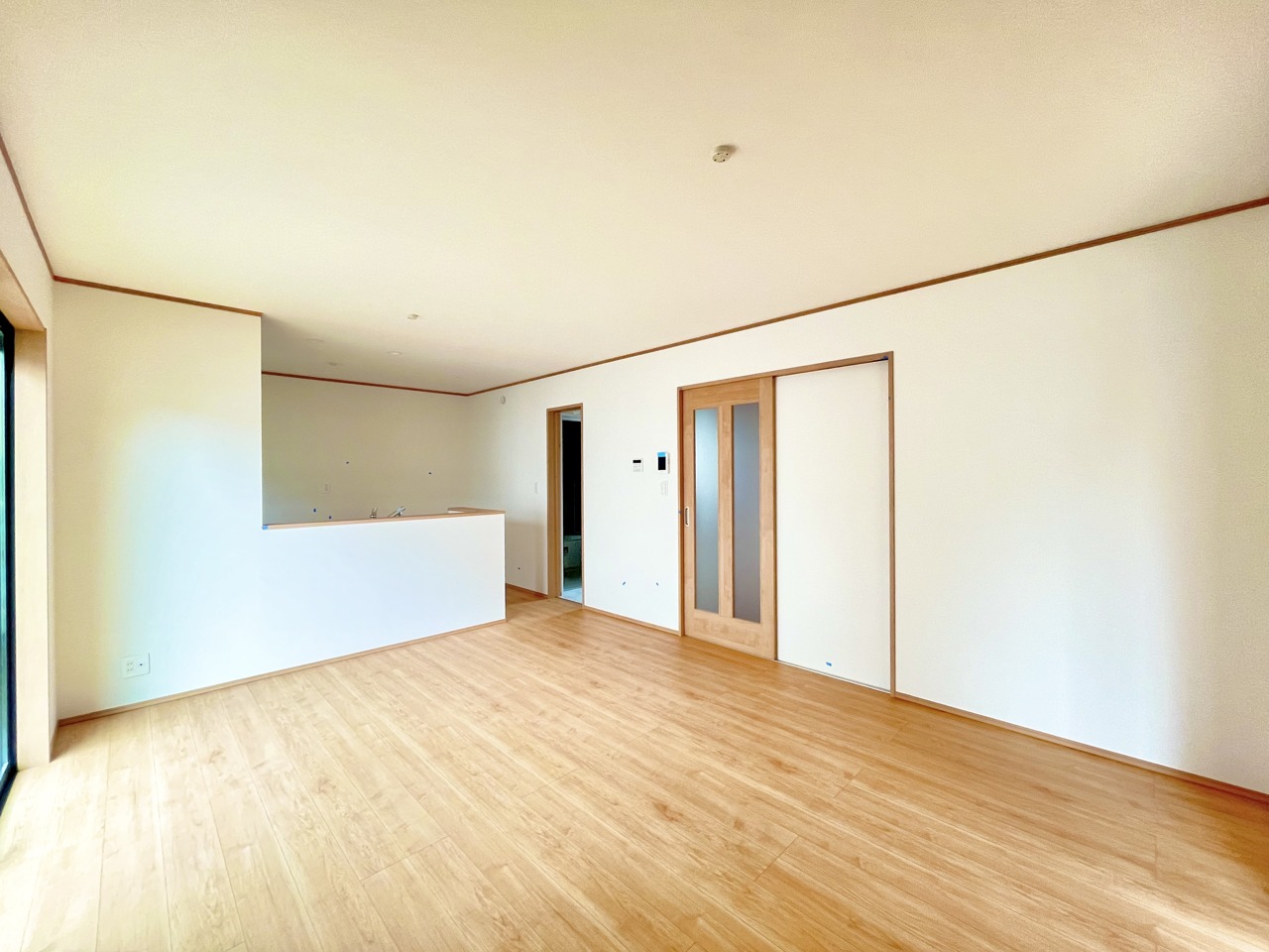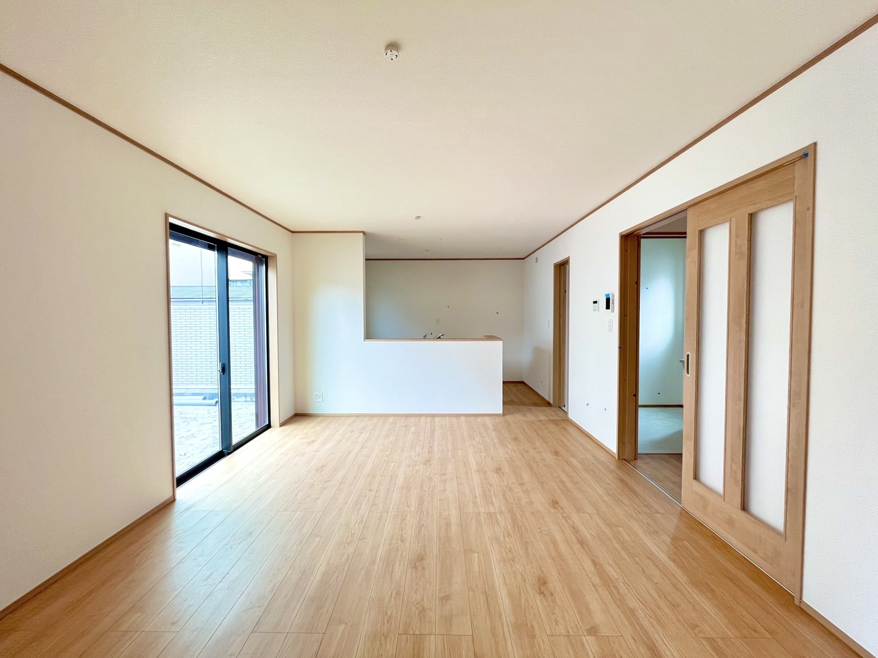 大きな開口部から明るい光が差し込む、日中の室内の明るさがこの部屋の魅力です。