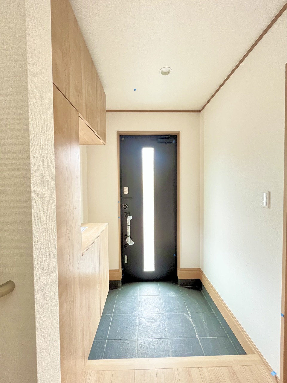 明るく開放的な玄関、靴の脱ぎ履きもしやすく、収納も豊富でご家族皆様の靴をスッキリ収納できます。
