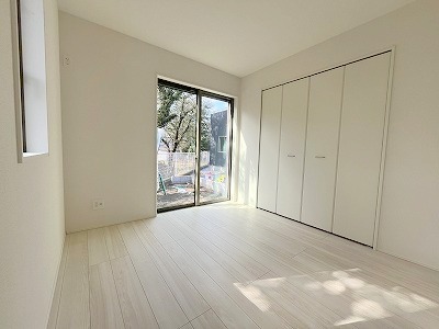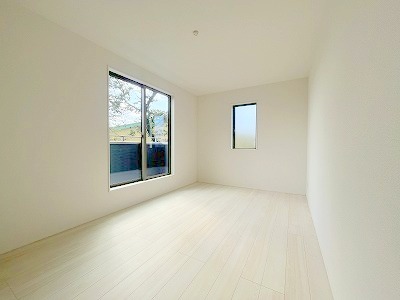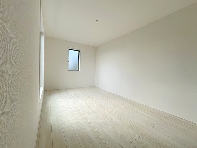 大きめのベッドを置いても、まだゆとりが持てる大きさ。8帖の主寝室。