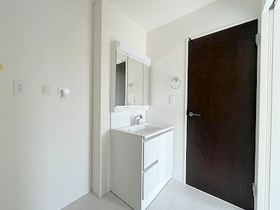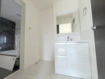 化粧台はやっぱり色が一番。シャワーヘッド付きの収納充実タイプです。