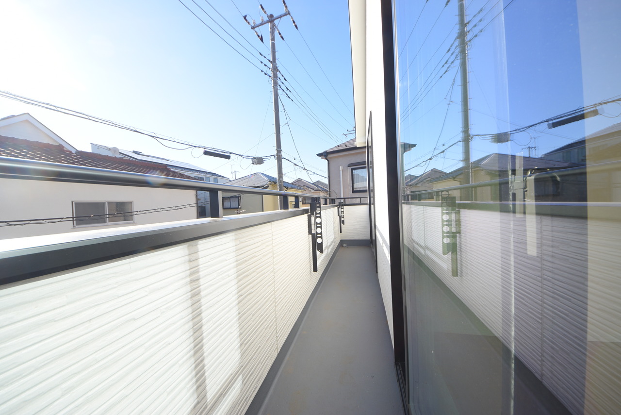 陽ざしが差込む明るいバルコニー。奥行きのあるバルコニーはお洗濯時に助かります。
