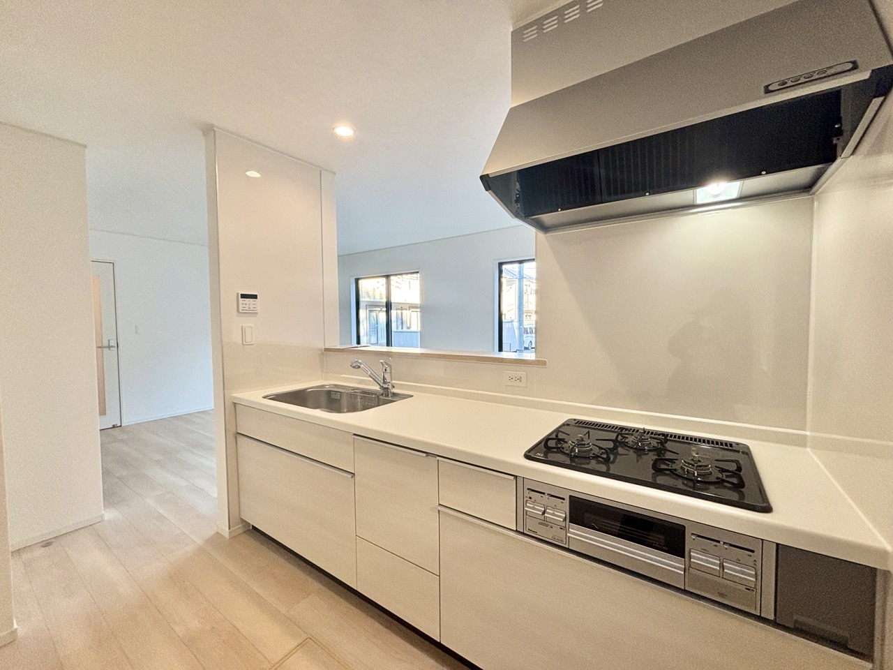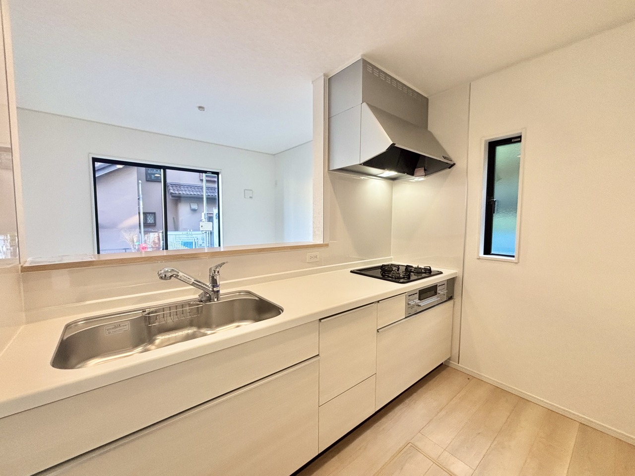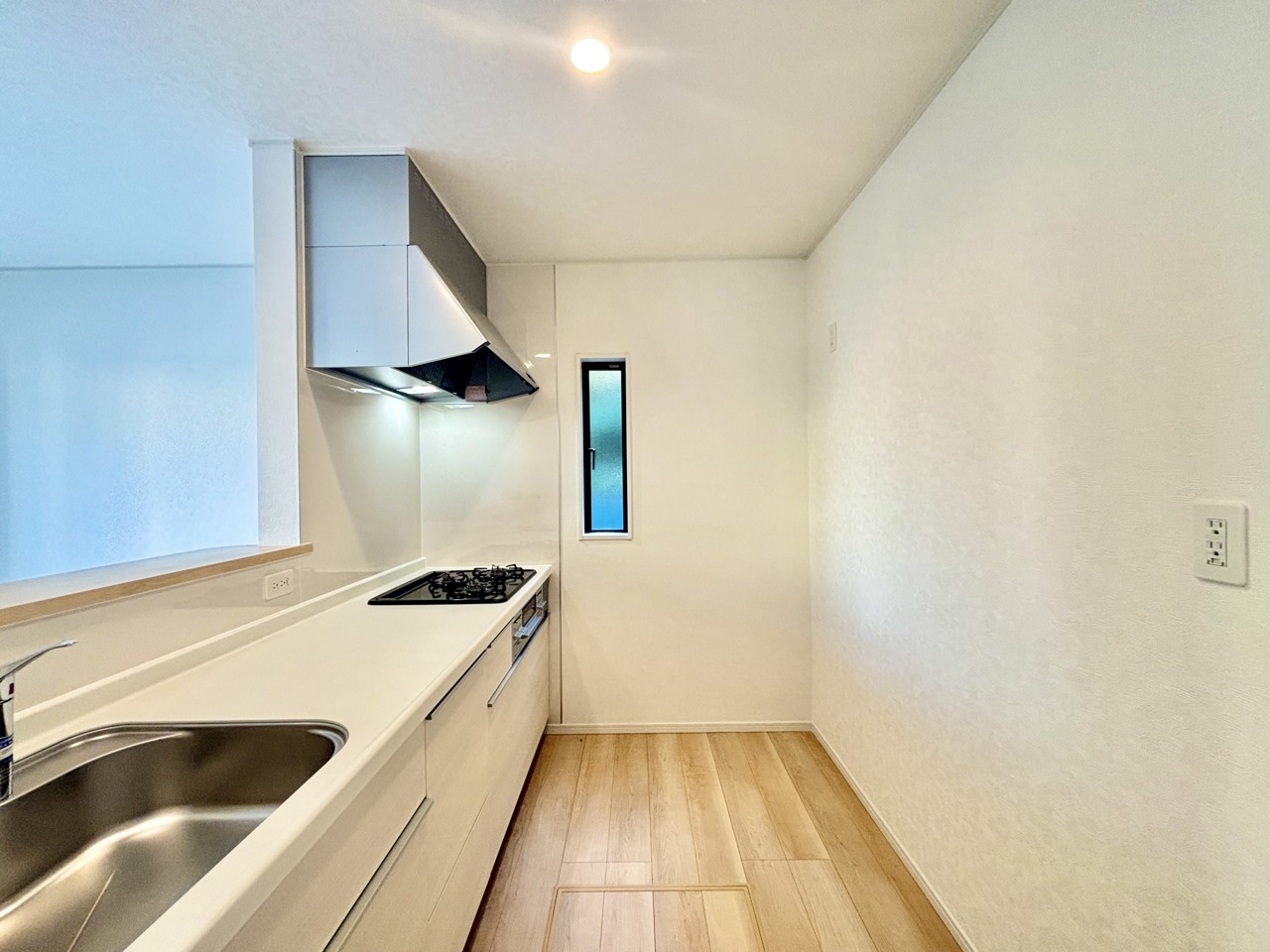 2号棟 明るい光が降り注ぐ窓があるキッチンはお料理を作る時の気持ちもいつもより明るくなります。近くに窓があるので換気もしやすいですね。