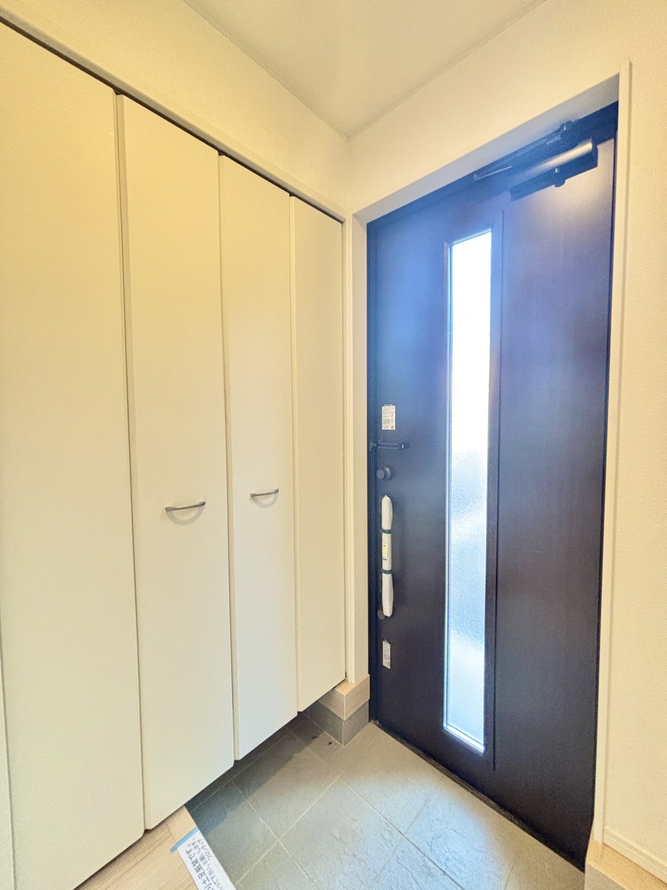 2号棟 明るく開放的な玄関、靴の脱ぎ履きもしやすく、収納も豊富でご家族皆様の靴をスッキリ収納できます。