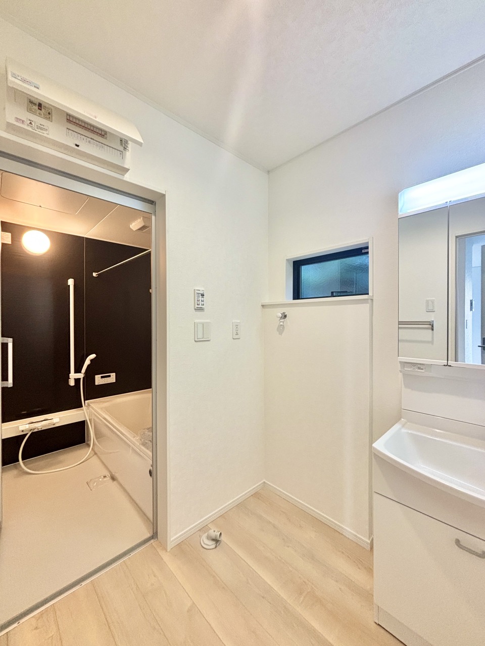 2号棟 お出かけ前の身だしなみに一歩差がつく三面鏡。ミラー裏にはたっぷり収納もございます。