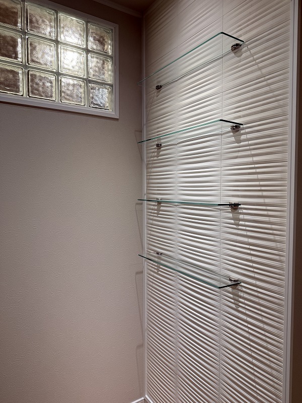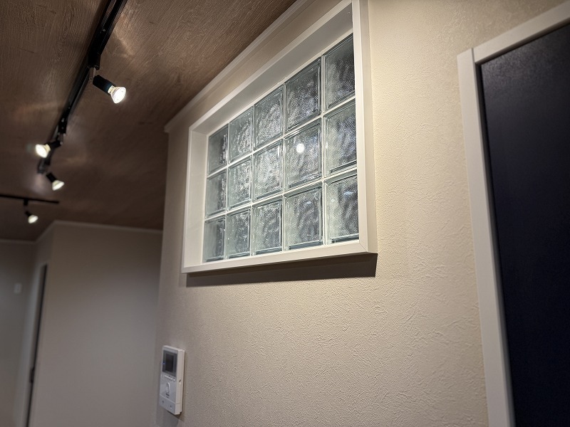 リビングの入り口には明り取りにも最適なガラスを設置。 見どころの多いお家ですが、一際目を引くポイント。