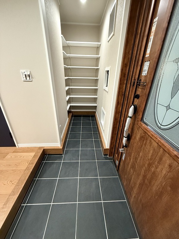 靴が沢山ある方には嬉しいシューズクローク。ベビーカーやゴルフバッグなども置けそうなスペースに