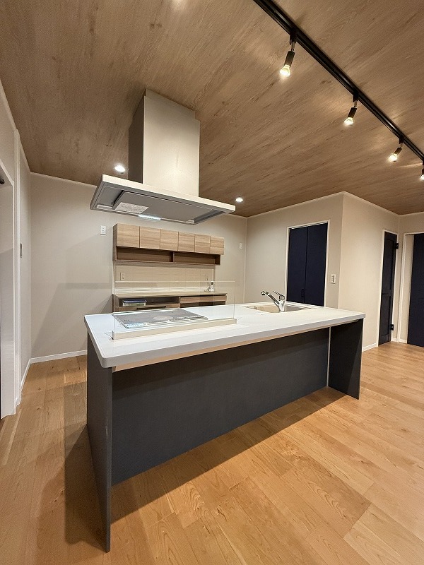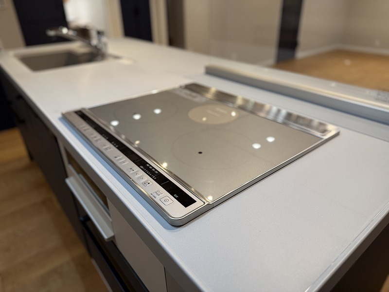 お料理をしながらリビングの家族やゲストとの会話が楽しめるカウンタータイプのキッチン。毎日のお料理を楽しく快適に。
