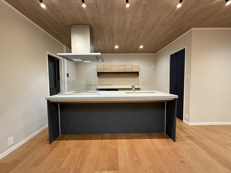 サイズの大きい2300×980(クリナップ製)タイプのカウンターキッチン、作業スペースもゆとりがあり、お子様とのお料理も楽しめるサイズ感。