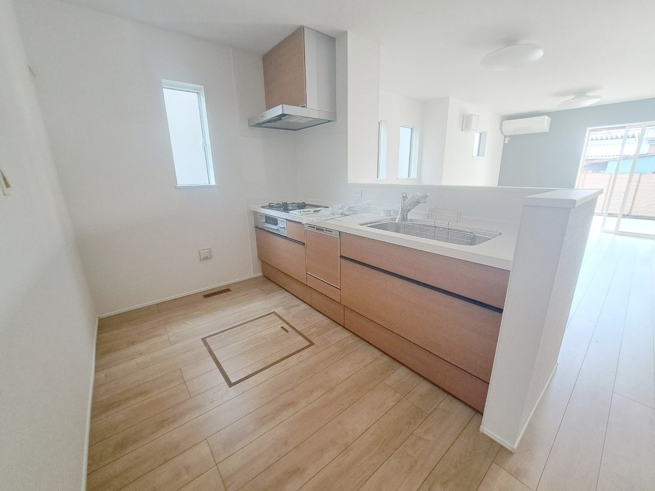 キッチンコンロスペースの近くには、空気の入れ替えが可能な開口部を設置!! お料理をする際には、換気扇を回しながら匂いが籠らない様に開放してお料理もお楽しみ頂けます。