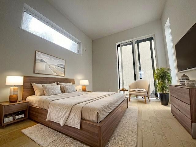 洋室はモダンなデザインと機能性を備え、快適な生活空間に。明るい窓から差し込む自然光が広々とした空間をさらに明るく開放的に感じさせます。