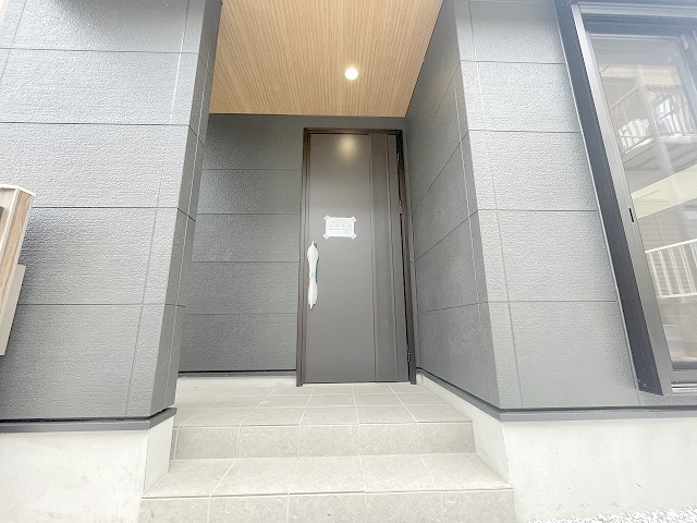 玄関は家の第一印象を左右する重要な場所。ほどよい広さとスタイリッシュな色遣いが印象的です。