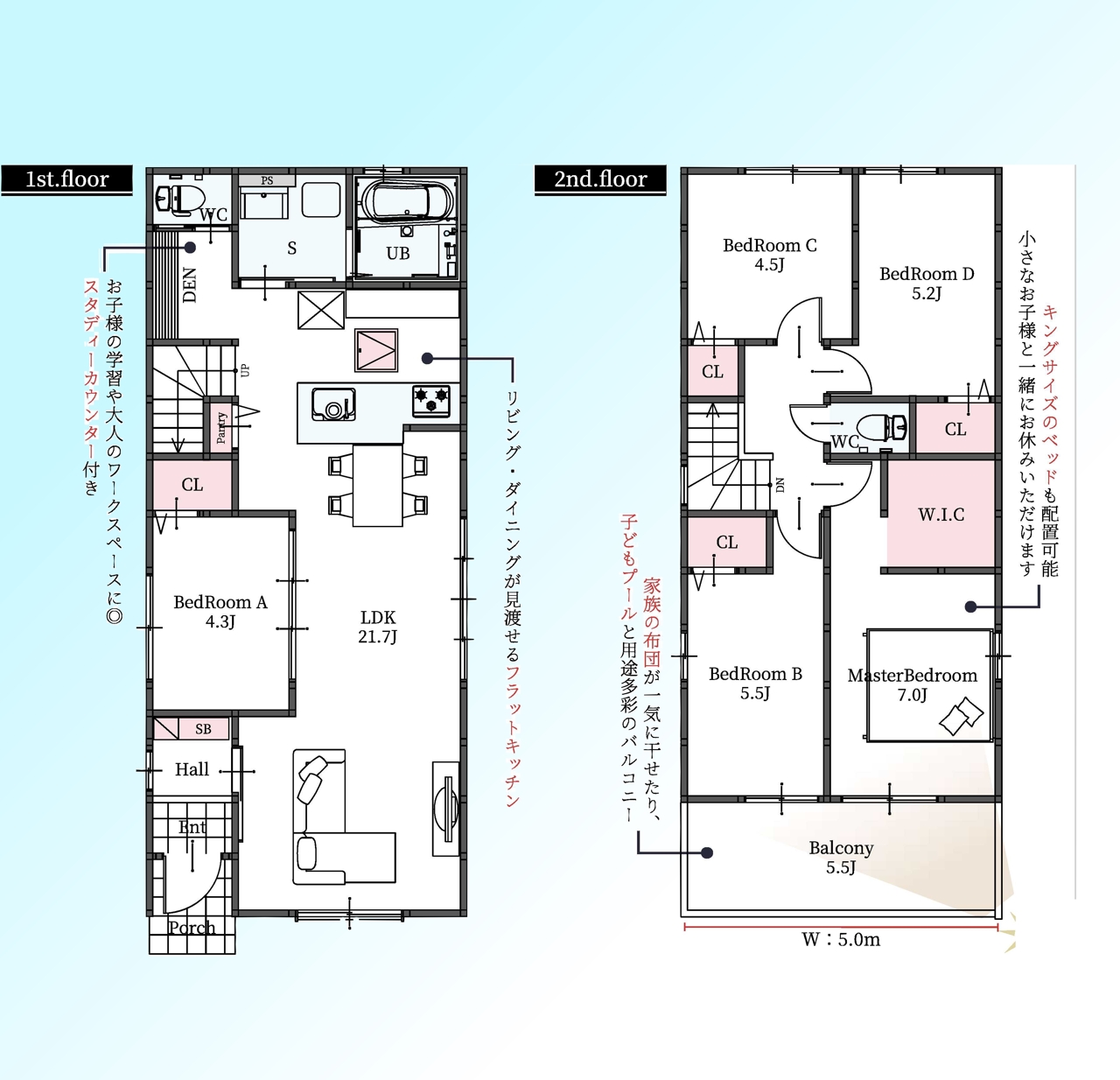 | 間取 | 4LDK~5LDK (LDK21.7帖、洋室4.3帖、洋室5.5帖、洋室4.5帖、洋室5.2帖、洋室7帖) | ||
