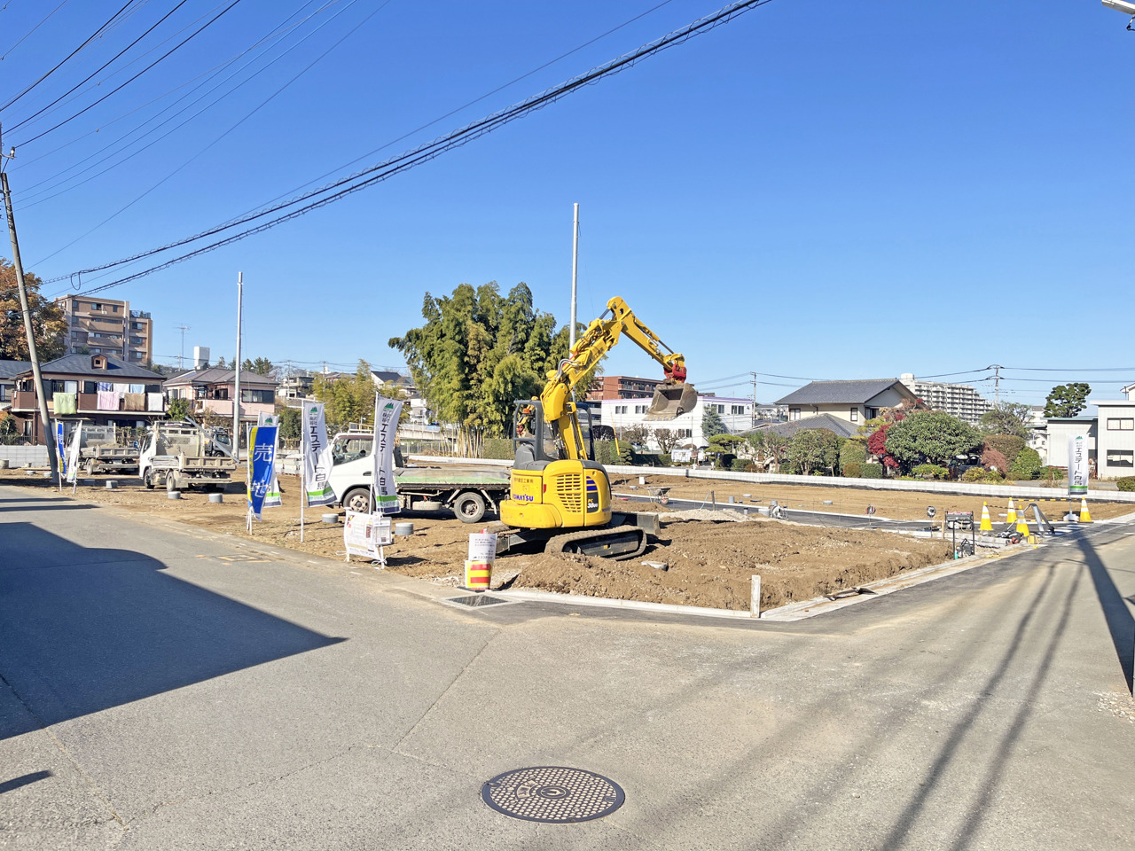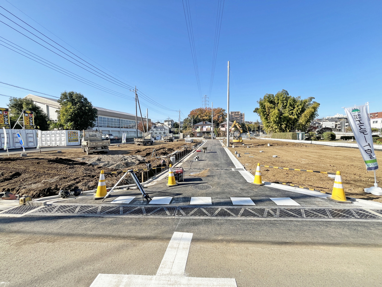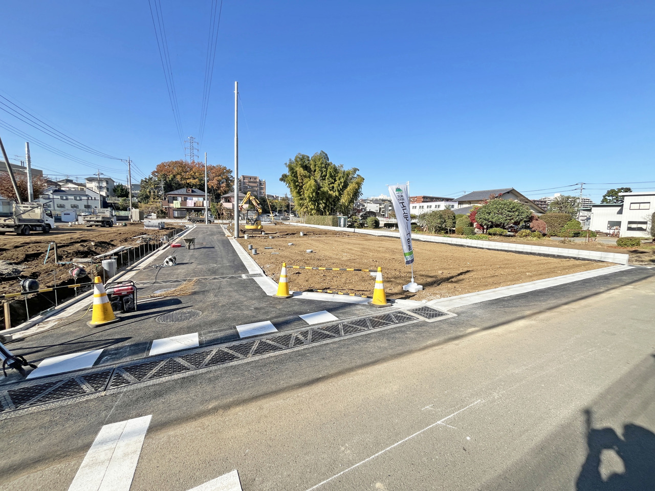 | 備考・制限等 | ゴミ置場持分4.8平米の内1/13有、開発許可番号指令第2025-0150号(開発許可変更番号指令第2025-0151番)、航空法、景観法 農地法、地目一部公衆用道路、水道負担金は買主様負担、高圧電線路下に該当するため建物の高さ制限あり、開発道路とセットバック部分は市に採納予定、 | ||
