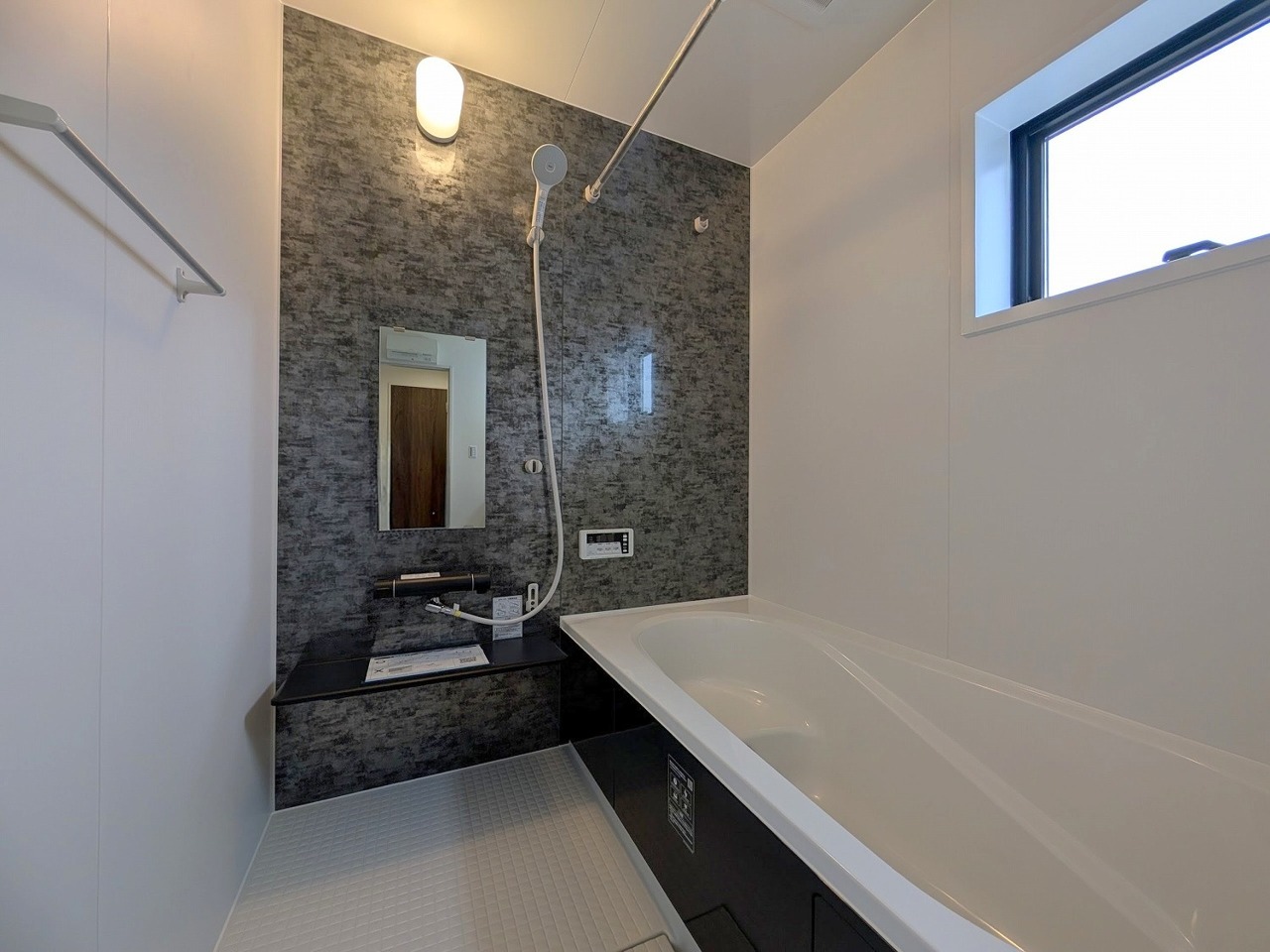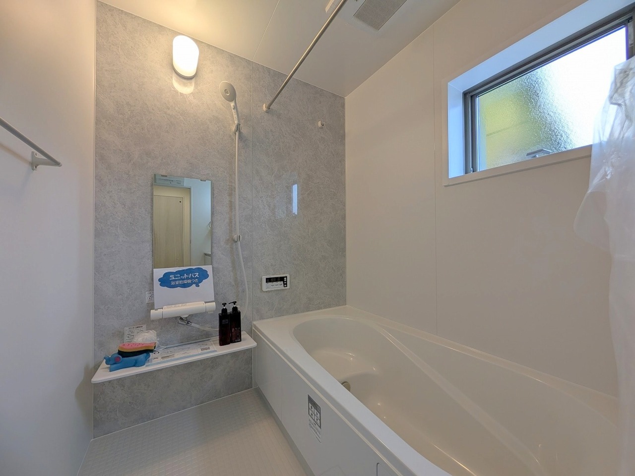 1号棟 広々1坪タイプのゆったり浴室ユニットは半身浴もゆっくり楽しめるベンチバス仕様。防カビ・抗菌素材なのもうれしい。 2026/04/09m