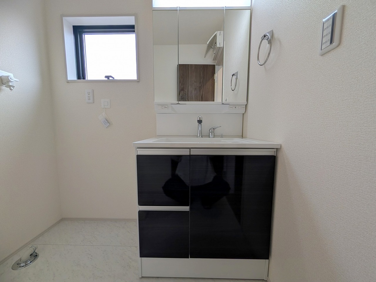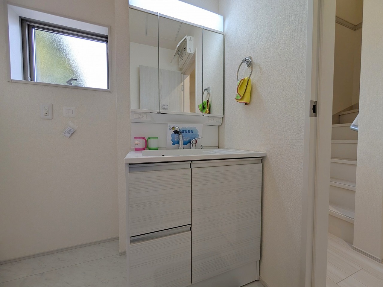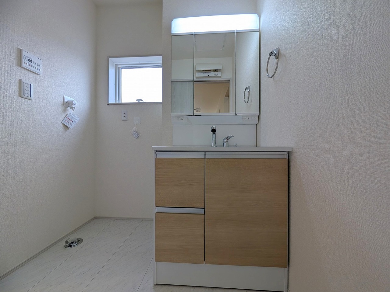 1号棟 収納豊富な三面鏡付洗面化粧台。水回りのあれこれがキレイに収まりそうですね。 2026/04/09m