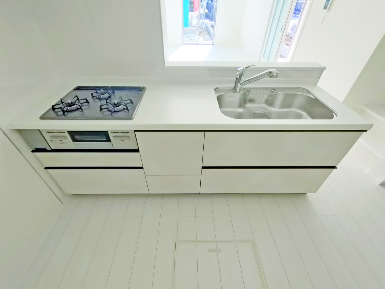 照り返しが眩しいシンク付きのキッチンで、楽しくお料理しませんか。