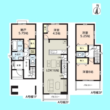 | 間取 | 3SLDK (LDK16帖、洋室6帖、洋室5.25帖、洋室4.5帖、S5.75帖) | ||
