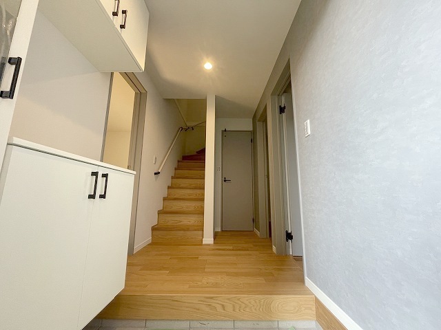 玄関は家の第一印象を左右する重要な場所。ほどよい広さとスタイリッシュな色遣いが印象的です。