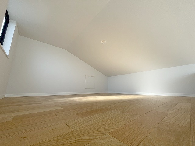 大きな屋根裏部屋はなんだかワクワクしてしまうスペース。趣味の空間や子供のワークスペース、季節物の収納など色々な用途に利用できそうな予感。