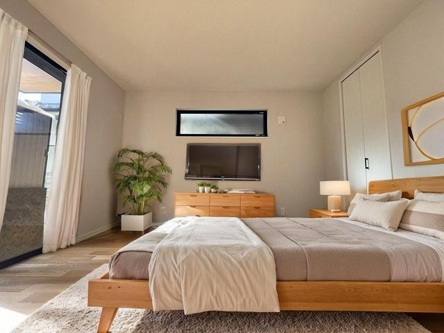 洋室はモダンなデザインと機能性を備え、快適な生活空間に。明るい窓から差し込む自然光が広々とした空間をさらに明るく開放的に感じさせます。