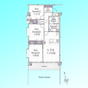 | 間取 | 3LDK (LDK13.6帖、洋室6帖、洋室6帖、洋室5.1帖) | ||