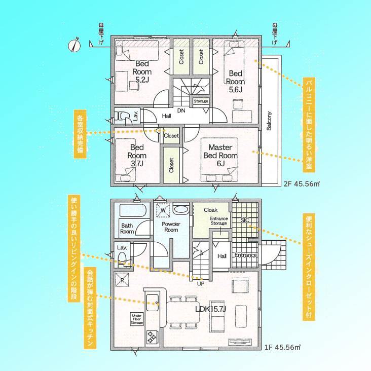 | 間取 | 4LDK (LDK15.7帖、洋室6帖、洋室5.2帖、洋室3.7帖) | ||