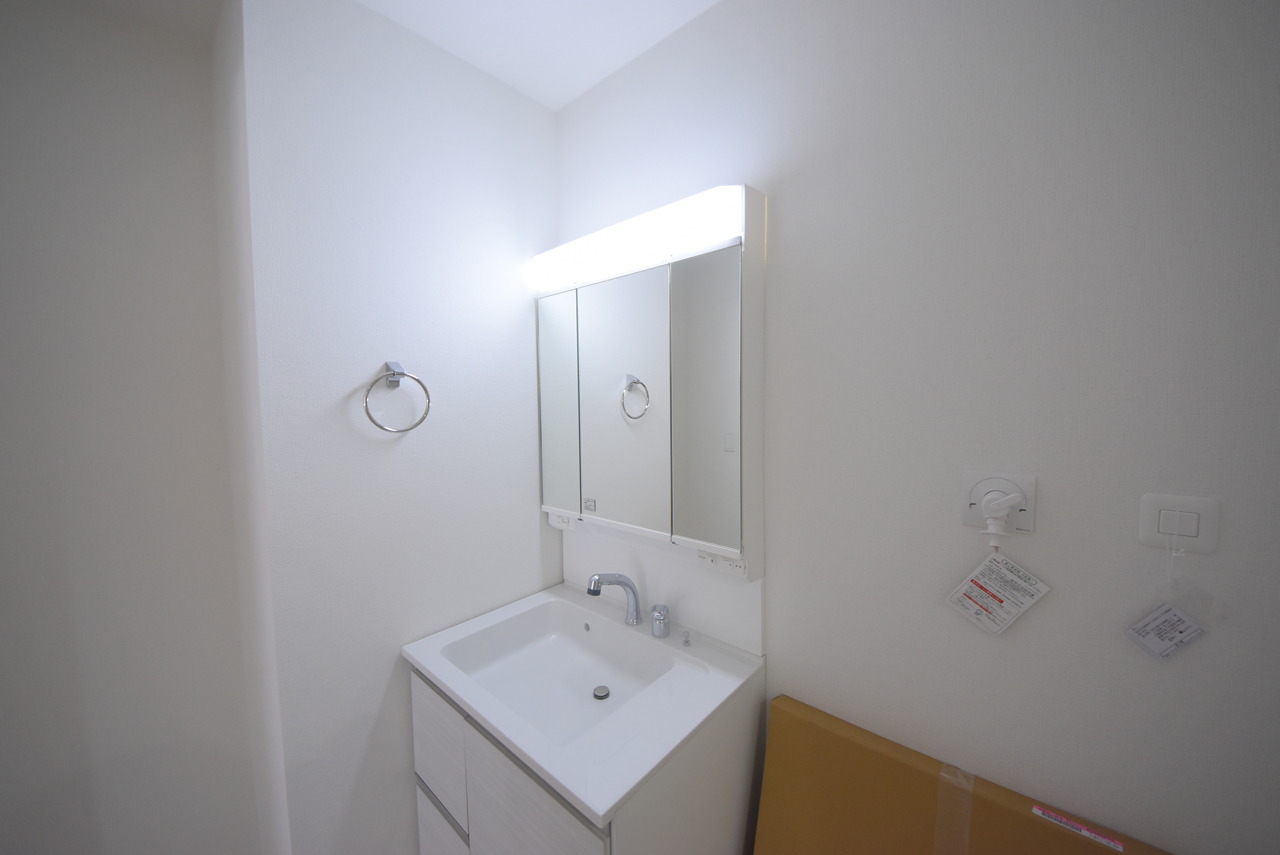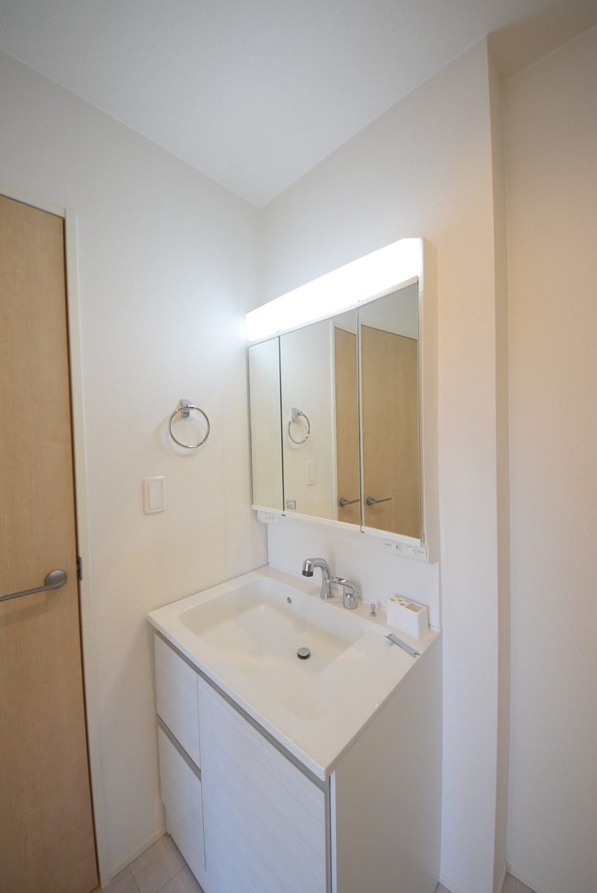 1号棟 お出かけ前の身だしなみに一歩差がつく三面鏡。ミラー裏にはたっぷり収納もございます。 2025/11/28m