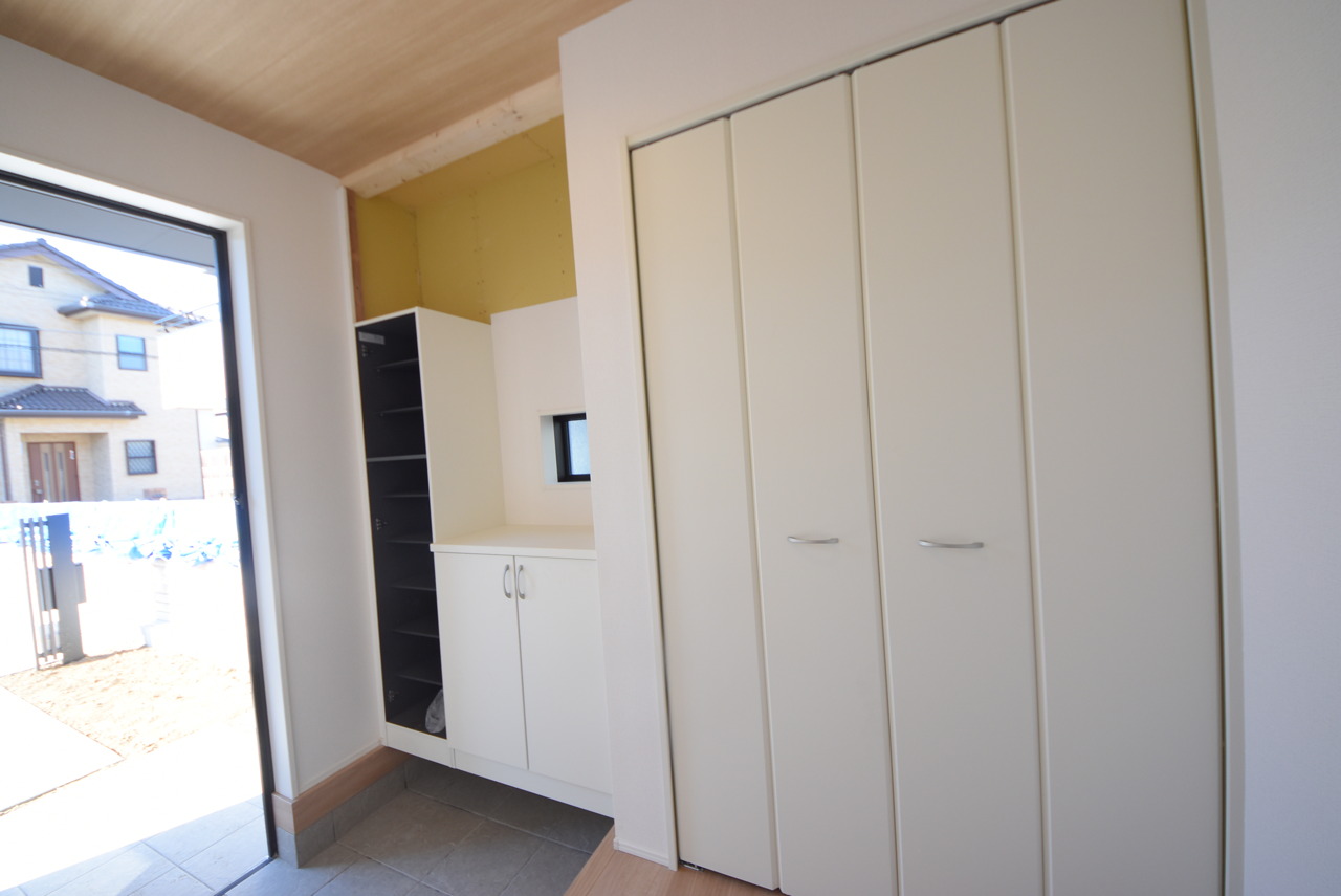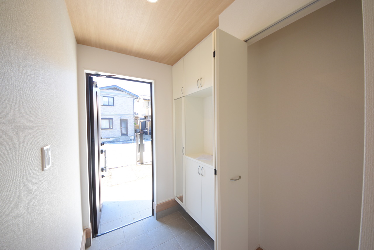 2号棟 明るく開放的な玄関、靴の脱ぎ履きもしやすく、収納も豊富でご家族皆様の靴をスッキリ収納できます。 2025/11/28m