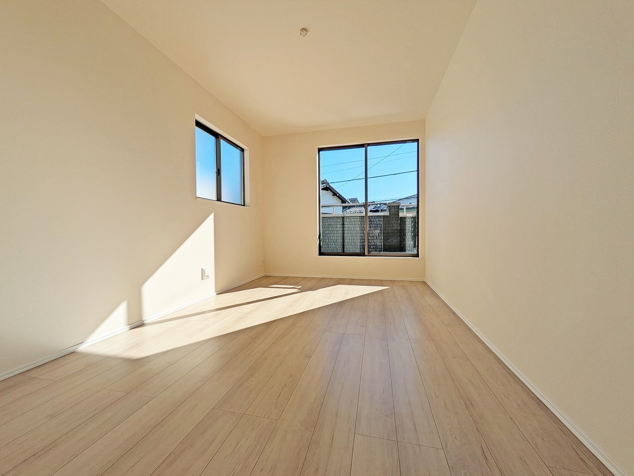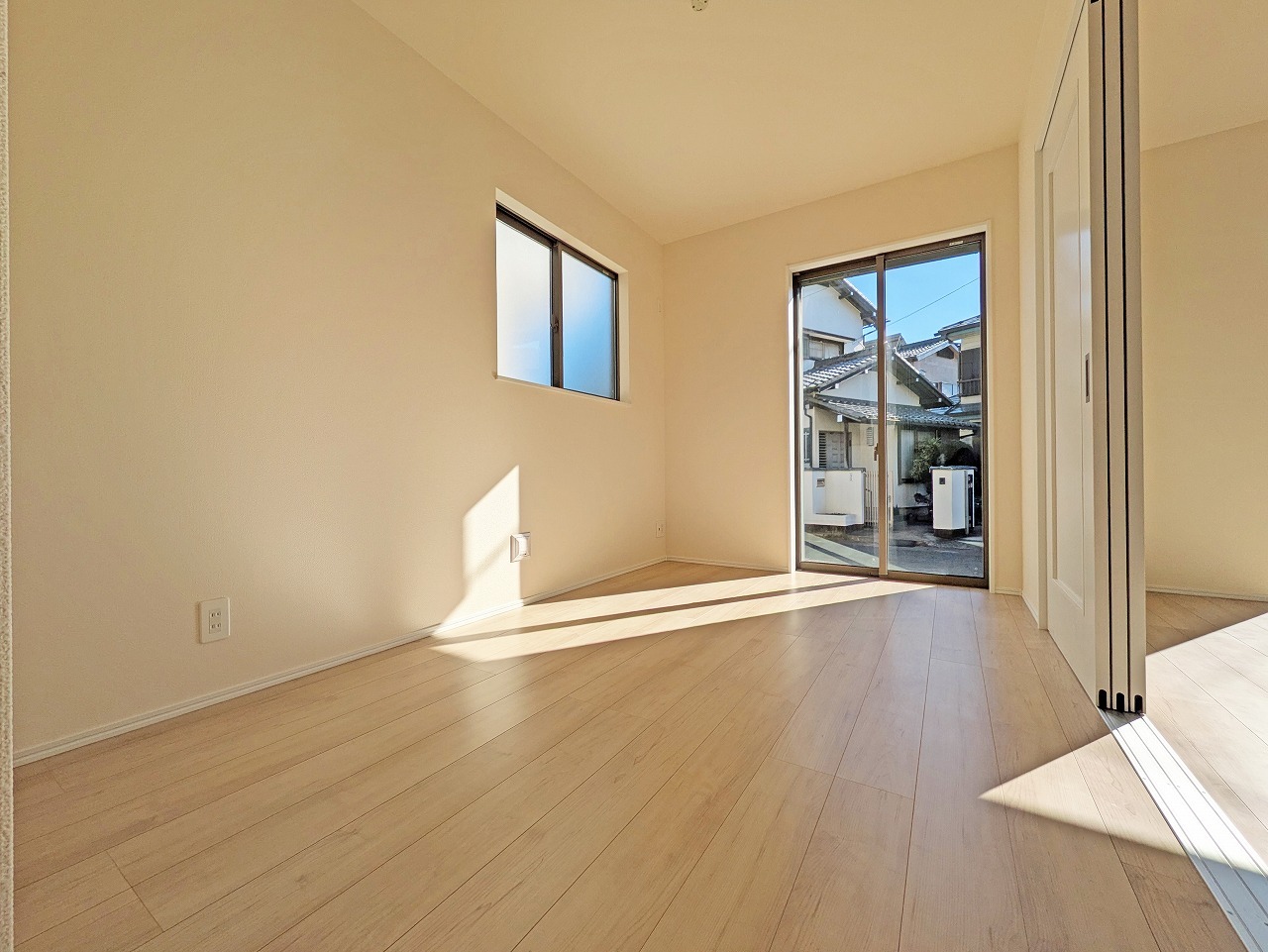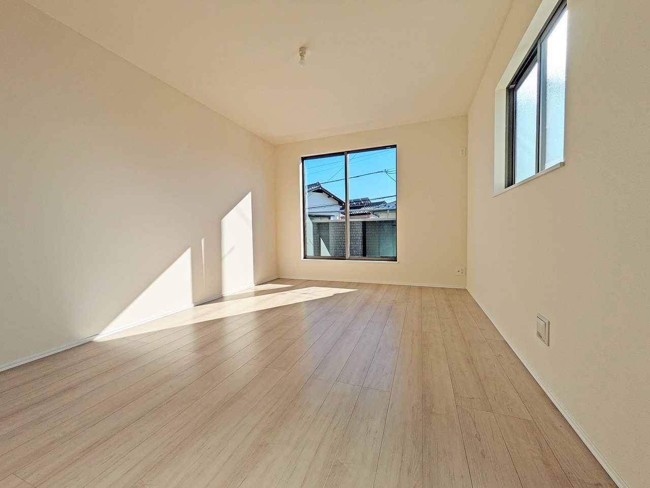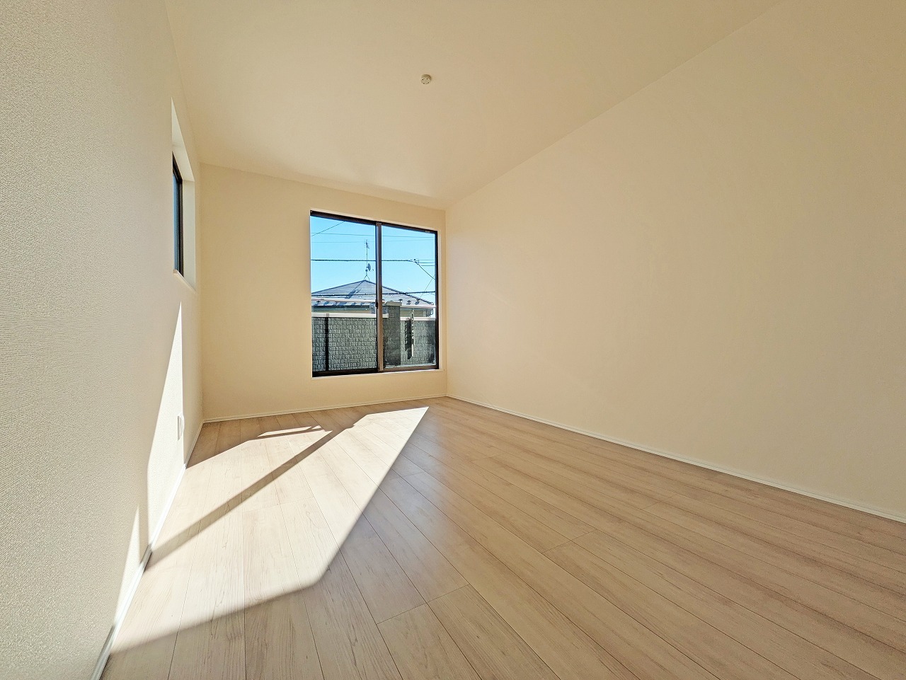 A号棟 大きめのベッドを置いても、まだゆとりが持てる大きさ。8.37帖の主寝室。