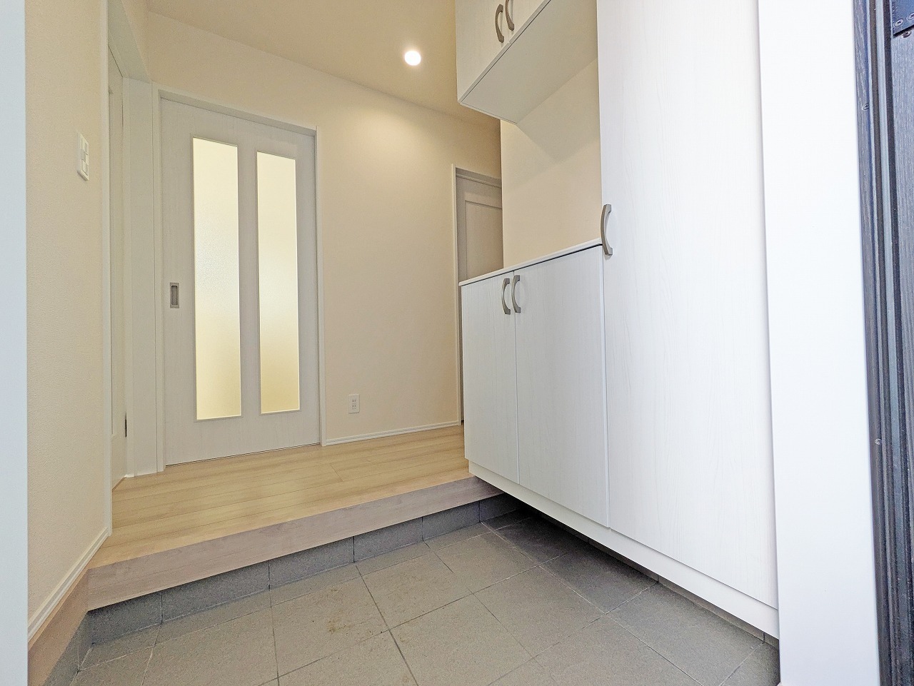 A号棟 玄関を開けたらシューズボックス、使いやすい配置です。