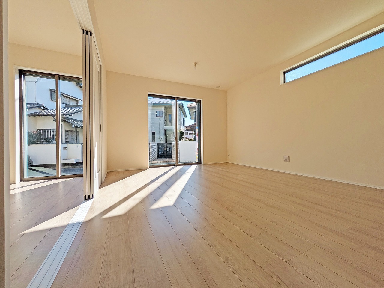 A号棟 ご家族みんながゆったりくつろげる広々リビング。