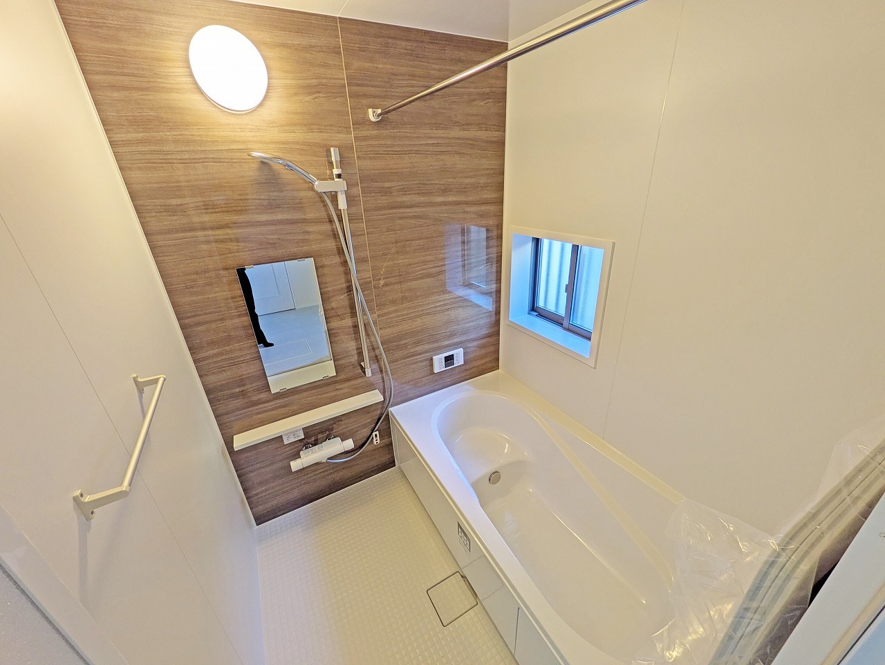 A号棟 広々1坪タイプのゆったり浴室ユニット。防カビ・抗菌素材なのもうれしい。
