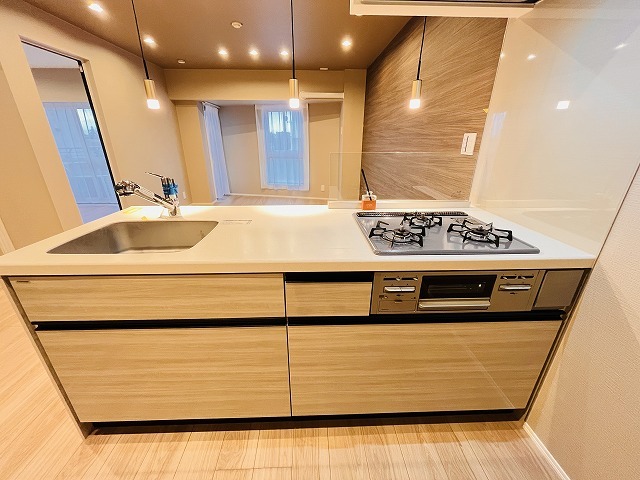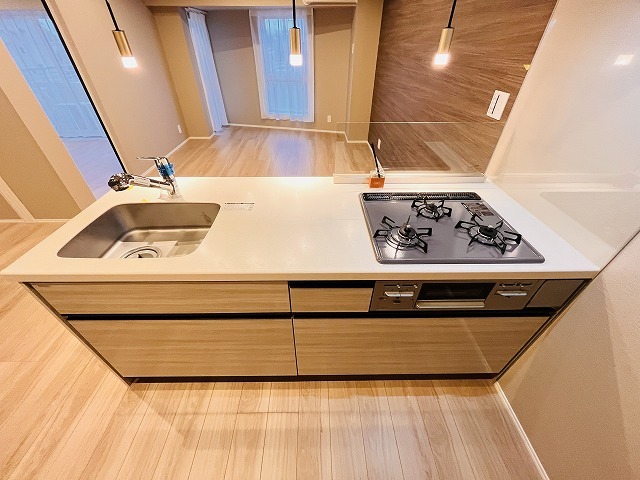 カウンターキッチンならではの開放的な見通し、全体が見渡せることでご家族の団欒スペースもより明るく笑顔が溢れる空間となります。