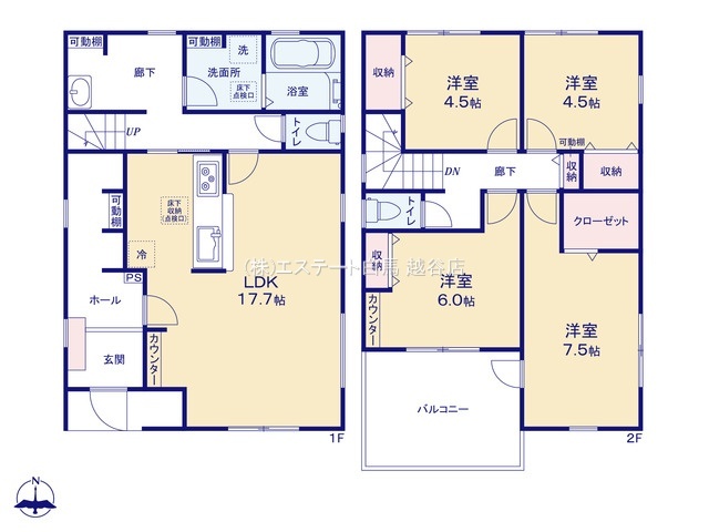 | 間取 | 4LDK (LDK17.7帖、洋室7.5帖、洋室6帖、洋室4.5帖、洋室4.5帖) | ||