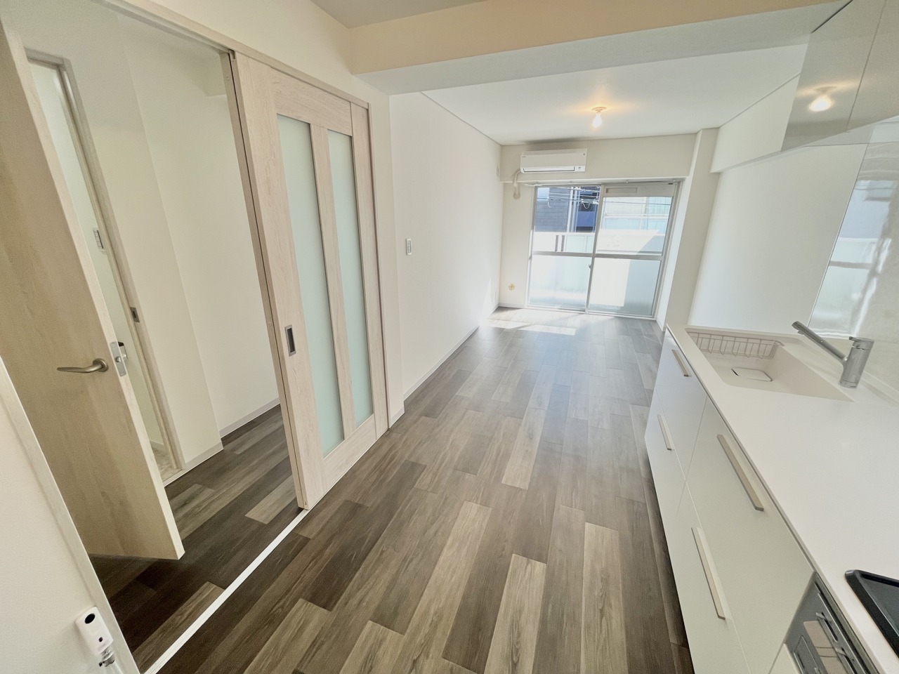 洗練された木目調の床が、空間に温かな広がりをもたらします。