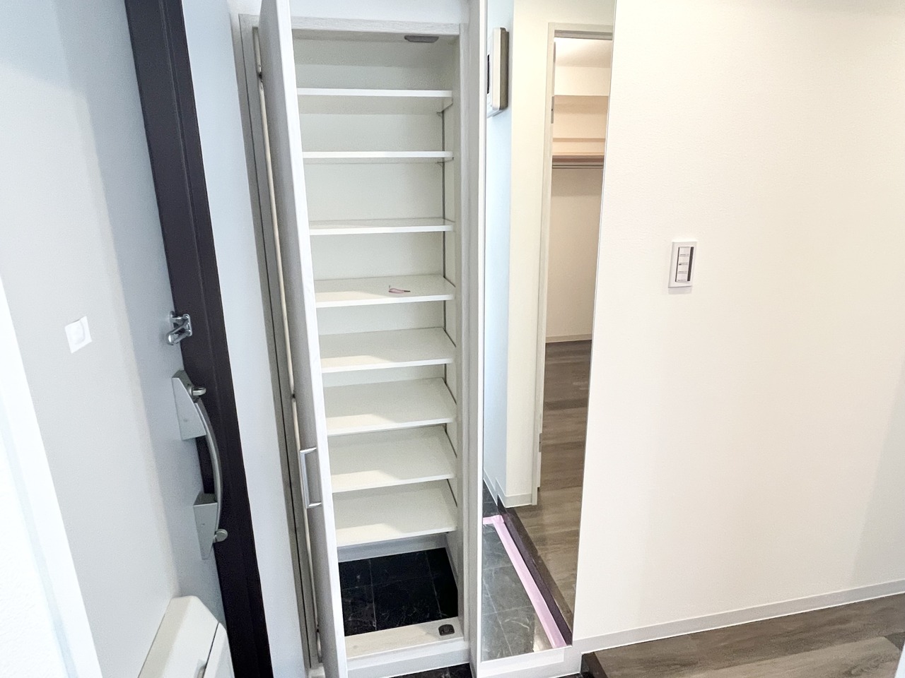 広々とした空間に、すっきりと整頓された収納スペースが広がります。