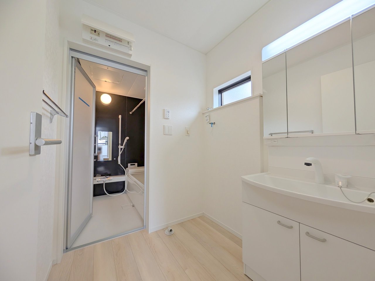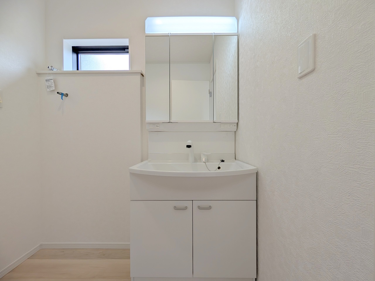 たっぷりの収納を設けたシャワー付洗面台で快適な暮らし。