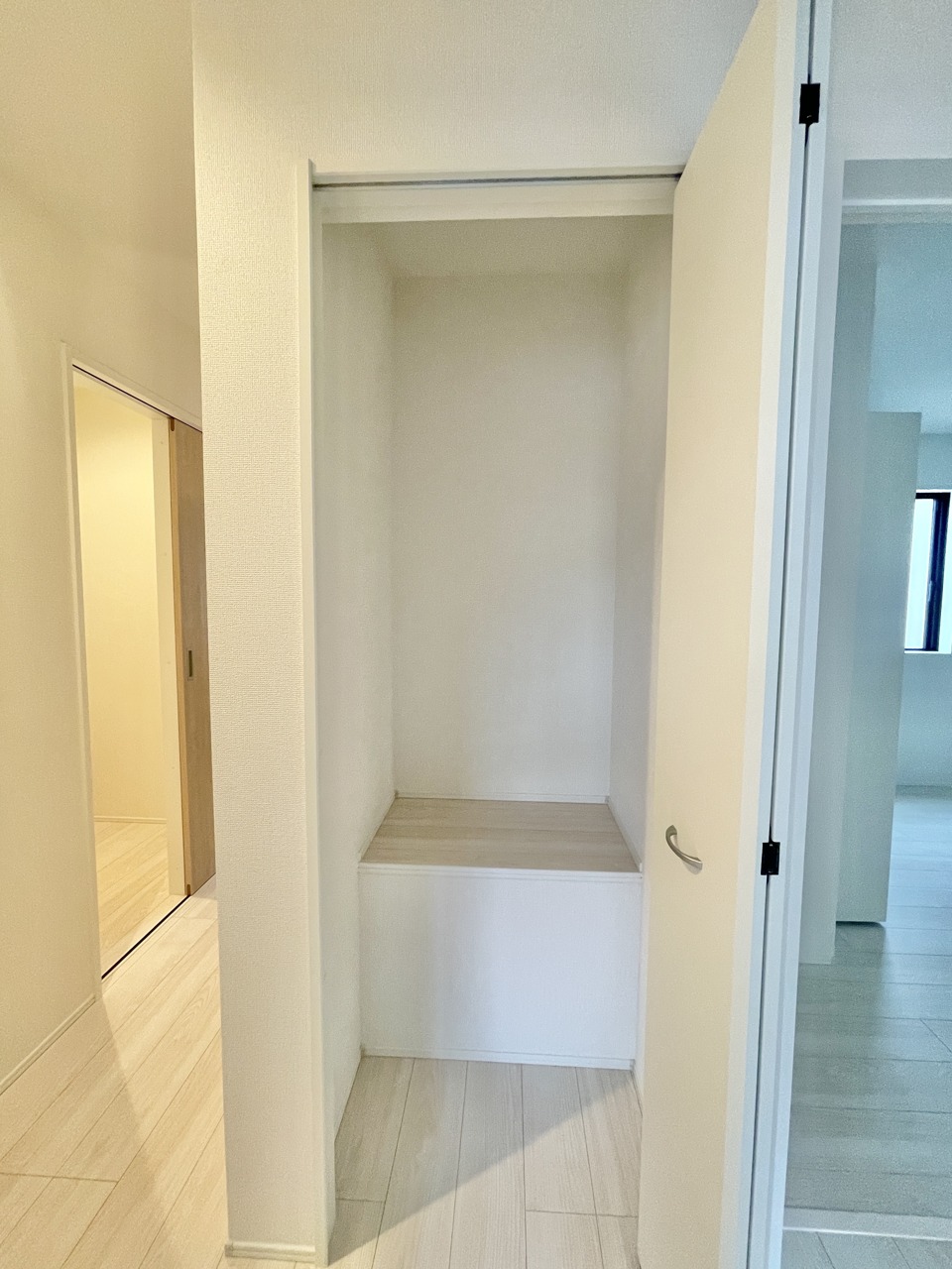 廊下や玄関の共用部には、こんな収納があるととっても便利です。