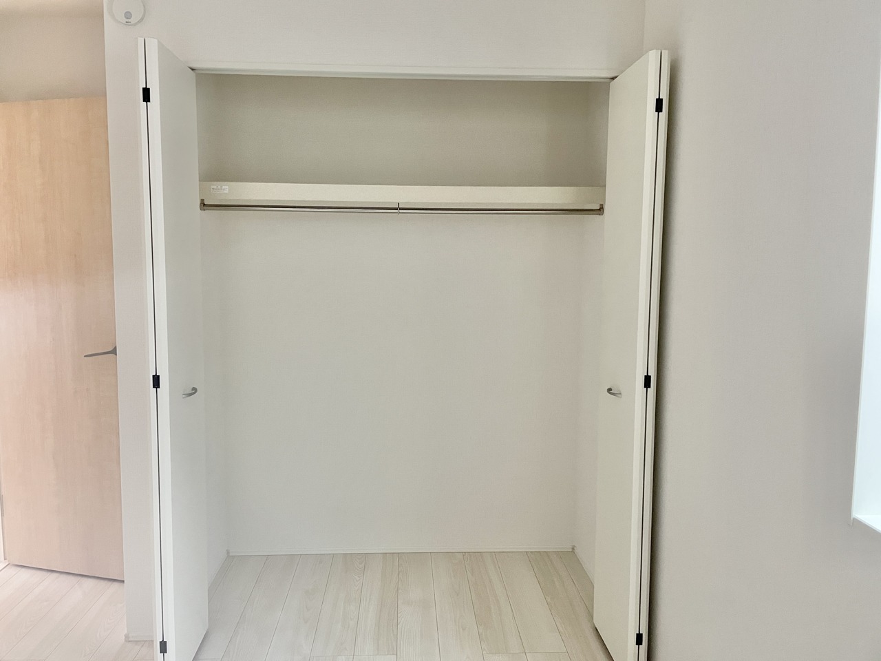 空間に広がりと静けさをもたらす、整然としたクローゼット。