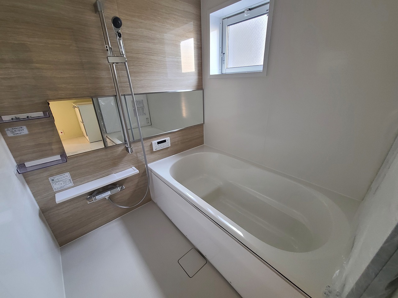 1号棟 一緒にお風呂に入っている子供達の声がリビングまで聞こえてきそうな広々とした1坪バス