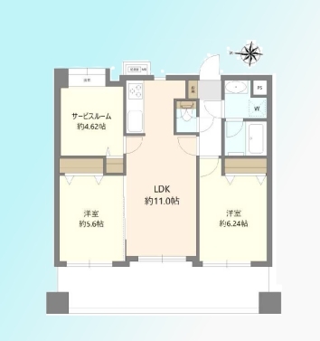 | 間取 | 2SLDK (LDK11帖、洋室6.24帖、洋室5.6帖、S4.62帖) | ||
