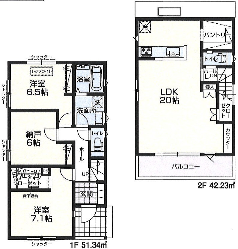 | 間取 | 2SLDK (LDK20帖、洋室7.1帖、洋室6.5帖、洋室6帖) | ||