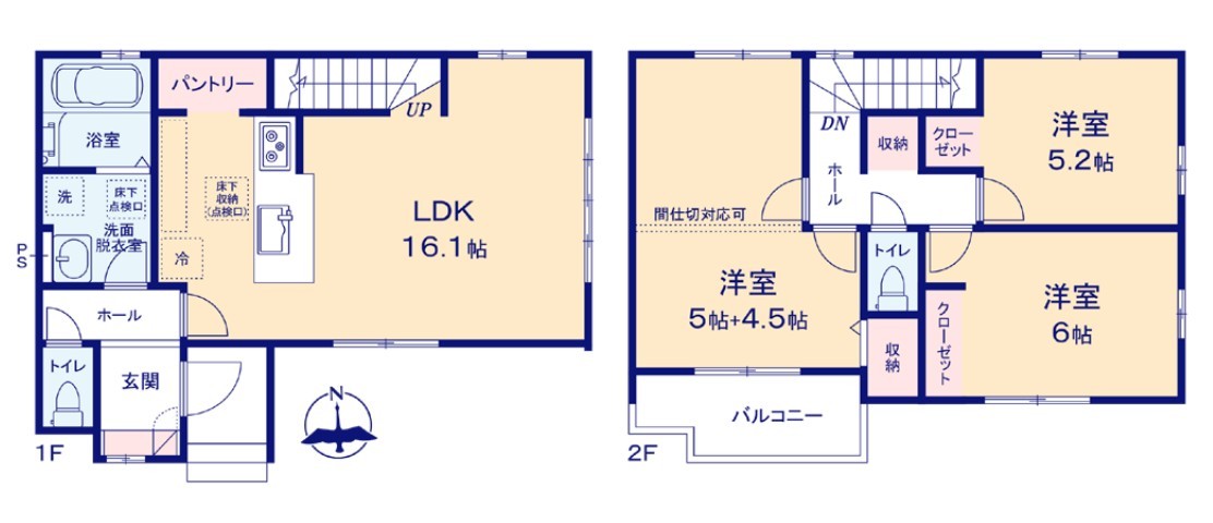 | 間取 | 3LDK (LDK16.1帖、洋室9.5帖、洋室6帖、洋室5.2帖) | ||