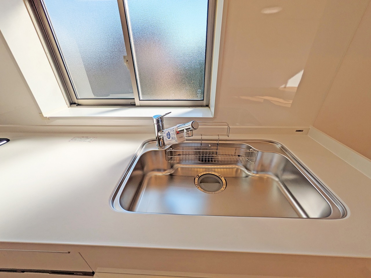 照り返しが眩しいシンク付きのキッチンで、楽しくお料理しませんか。