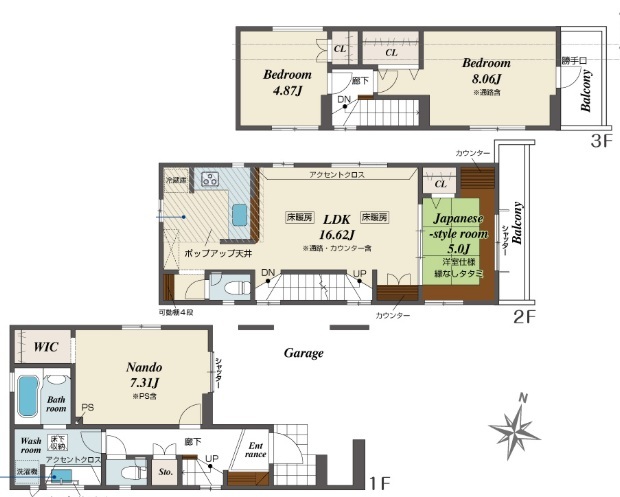| 間取 | 3SLDK (LDK16.62帖、和室5帖、洋室8.06帖、洋室4.87帖、S7.31帖) | ||