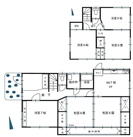 | 間取 | 6DK (DK7帖、洋室7帖、洋室6帖、洋室5帖、和室6帖、和室6帖、和室6帖) | ||