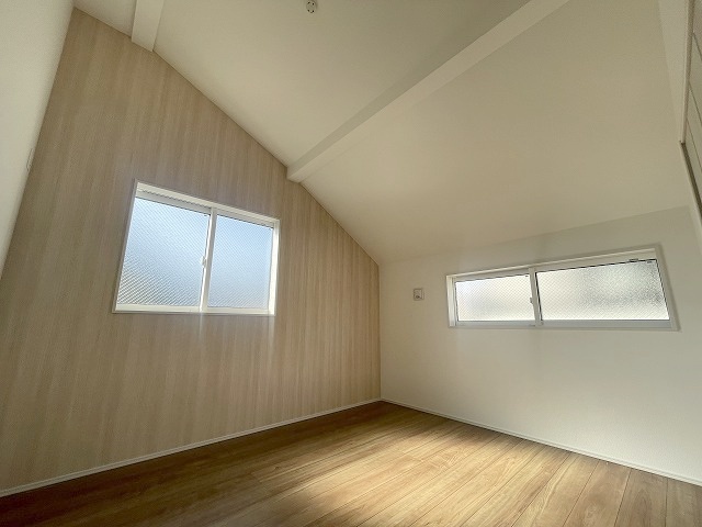 勾配天井の2階のお部屋。この勾配の角度がお洒落な雰囲気を感じさせてくれます。