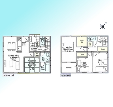 | 建物面積 | 85.04m² ~ 100.44m² 実測 | ||