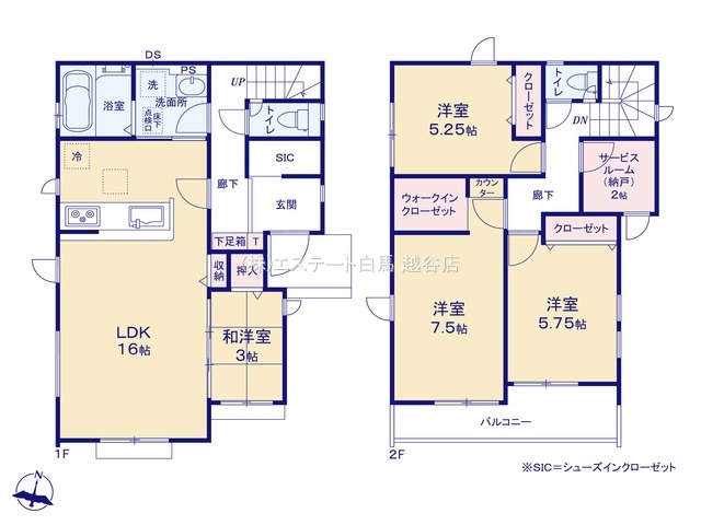 | 間取 | 4LDK + 2階サービスルームあり (LDK16帖、和室3帖、洋室7.5帖、洋室6.25帖、洋室5.75帖) | ||
