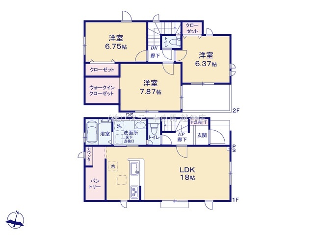 | 間取 | 3LDK (LDK18帖、洋室7.87帖、洋室6.75帖、洋室6.37帖) | ||